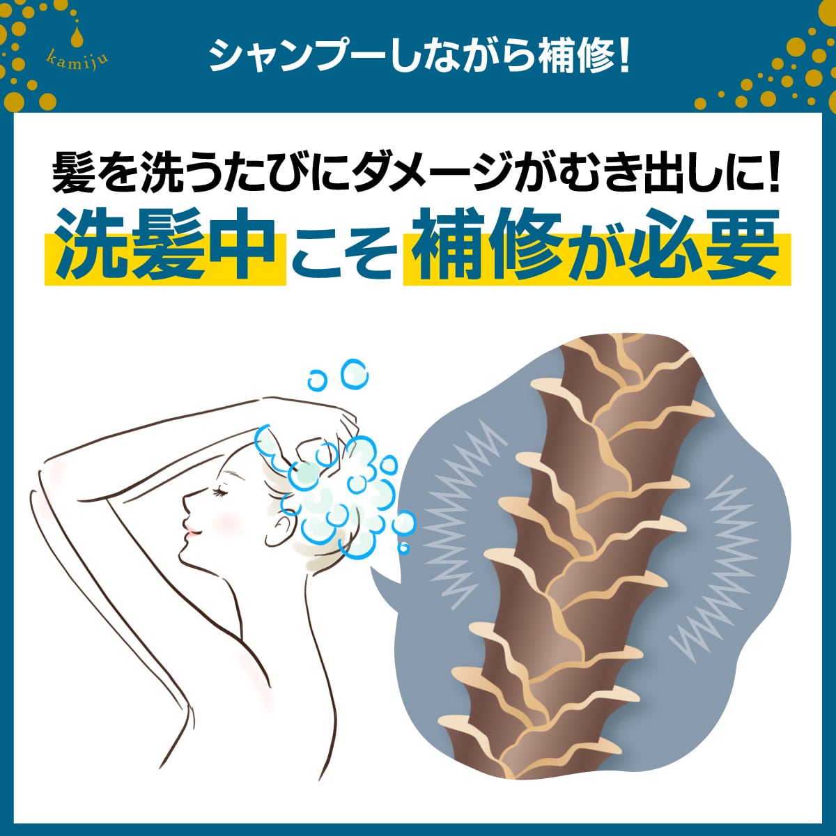 適量を手に取り、髪の根元から毛先を中心に揉み込みながら塗布します(頭皮にトリートメントが付着しても問題はございません)。髪になじませた後、しつかりと洗い流してください。カミージュヘアソースとあわせてお使いいただくことをおすすめします。